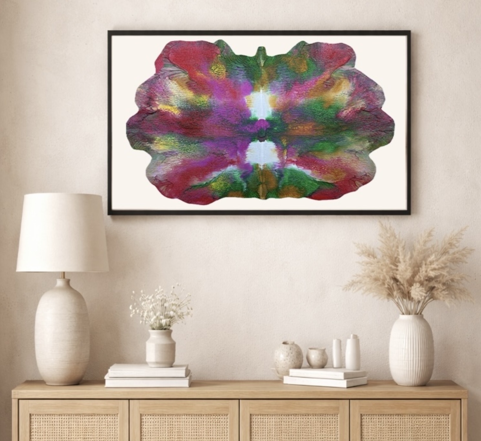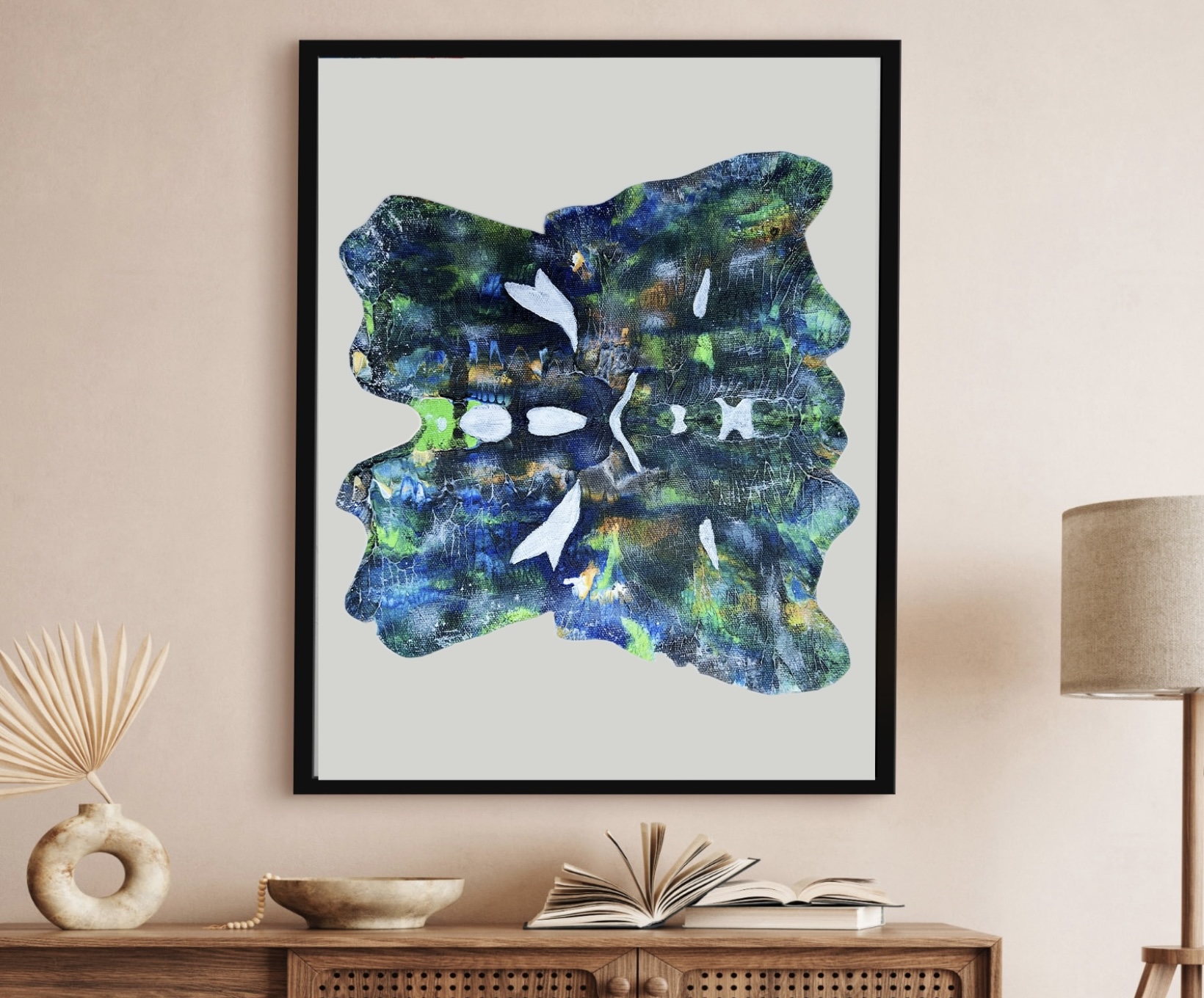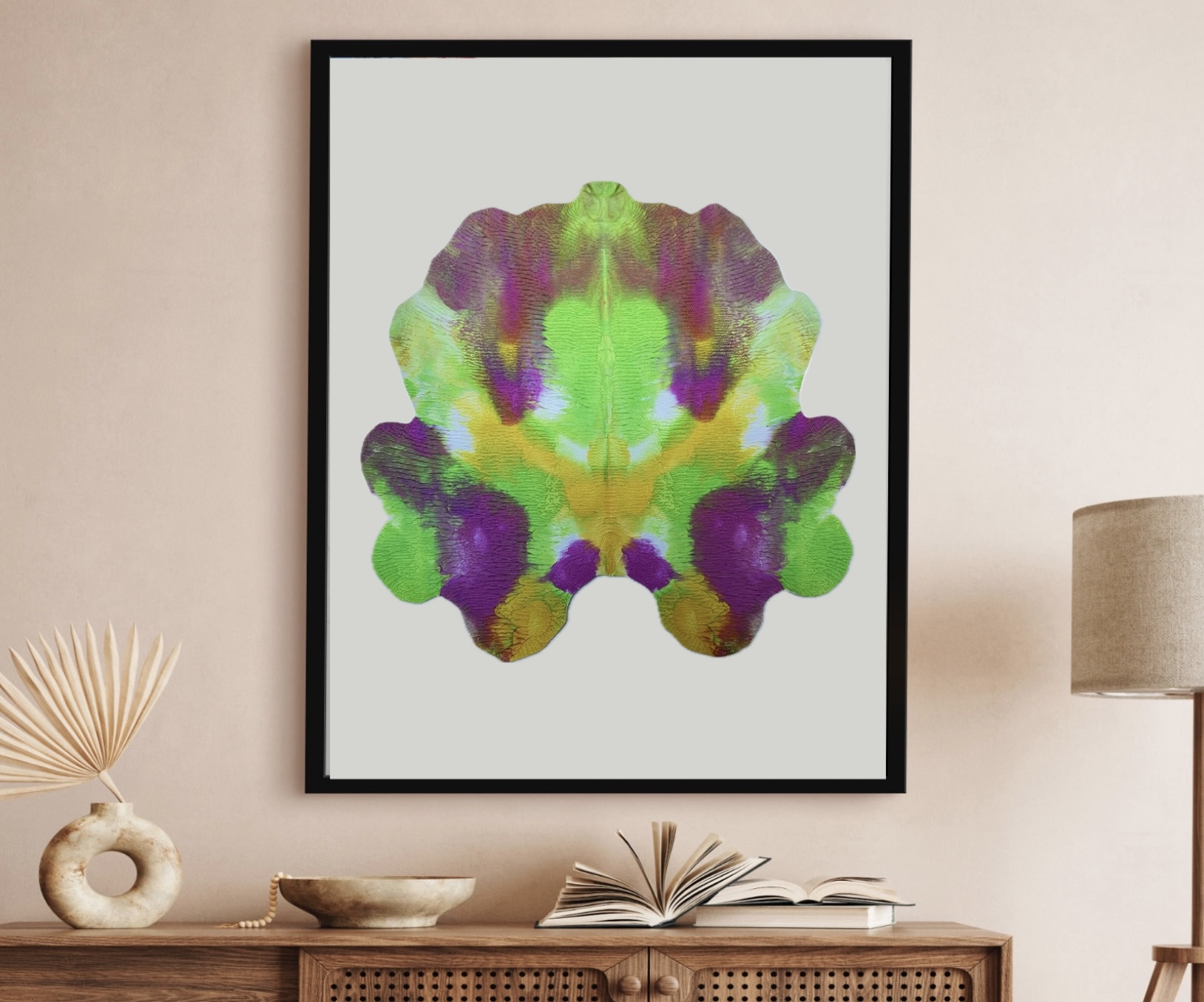 Tyto abstraktní malby vznikly z pozorování a důvěry v to, co se objeví, když se člověk přestane snažit něco vysvětlovat. Jsou inspirované principem Rorschachova testu – symetrií, náhodou a otevřeností významu – nikoli však k analýze, ale k rozjímání.