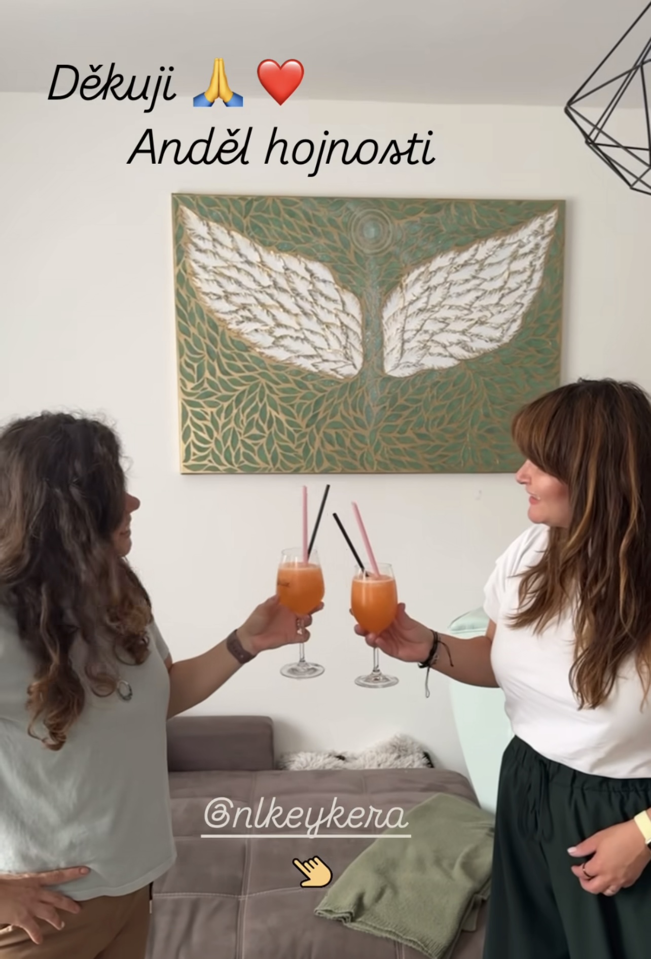 Prvotina celé série Anděla hojnosti. Nese v sobě energii samotného začátku. Ve světě umění jsou prvotiny mimořádně cenné, protože představují základní kámen celé tvorby. Vlastnit jej znamená mít jedinečný originál z roku 2022, jehož hodnota i význam rostou a budou ještě růst.