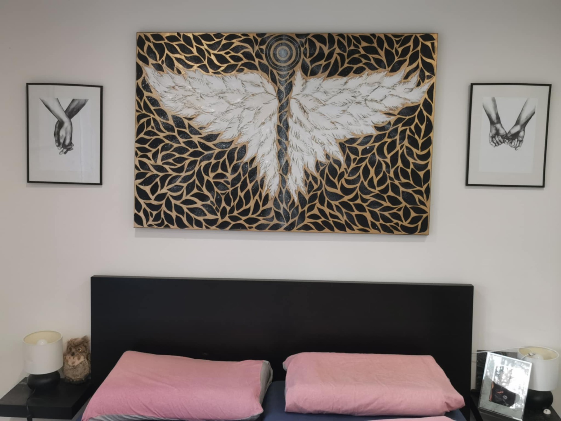 A tak vznikl můj první anděl - bez správných nástrojů, jen s odhodláním. Obraz velký 1.5 metru.