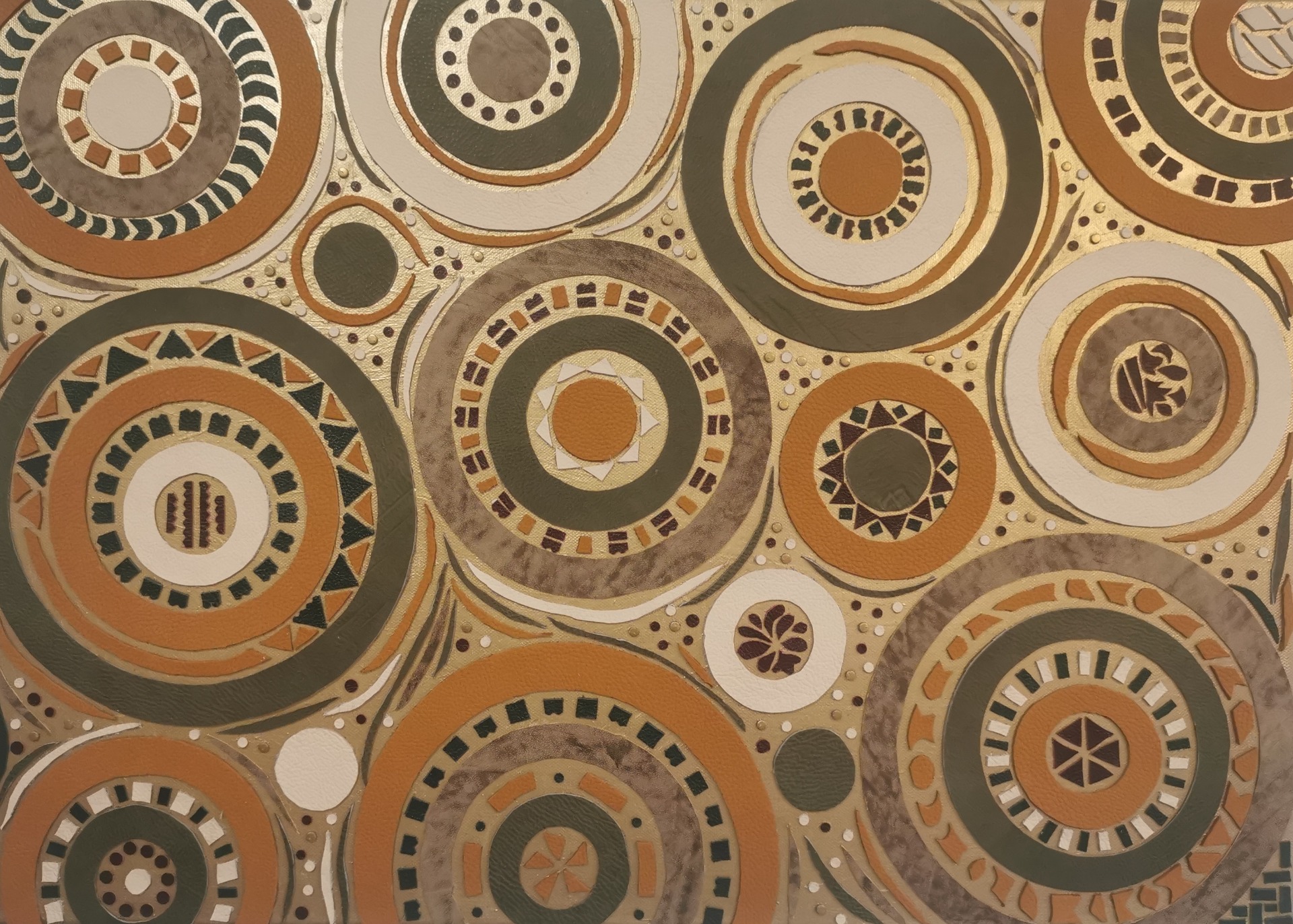 malba tekutý zlatý kov a koláž z hovězí kůže